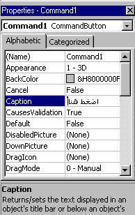 وهي المسؤلة عن اظهار النصوص على الأزرار Caption سنجد من ضمن الخصائص خاصية